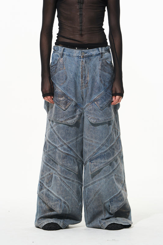BLINDNOPLAN 24AW High-end series bronzed serpentine stitching denim cargo pants