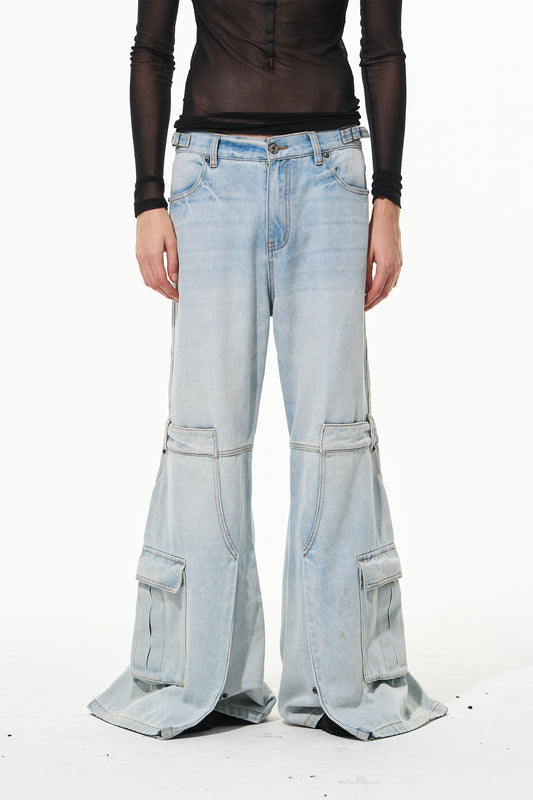 BLINDNOPLAN 24AW High-end series jeans with double muzzle light coloured cargo pocket